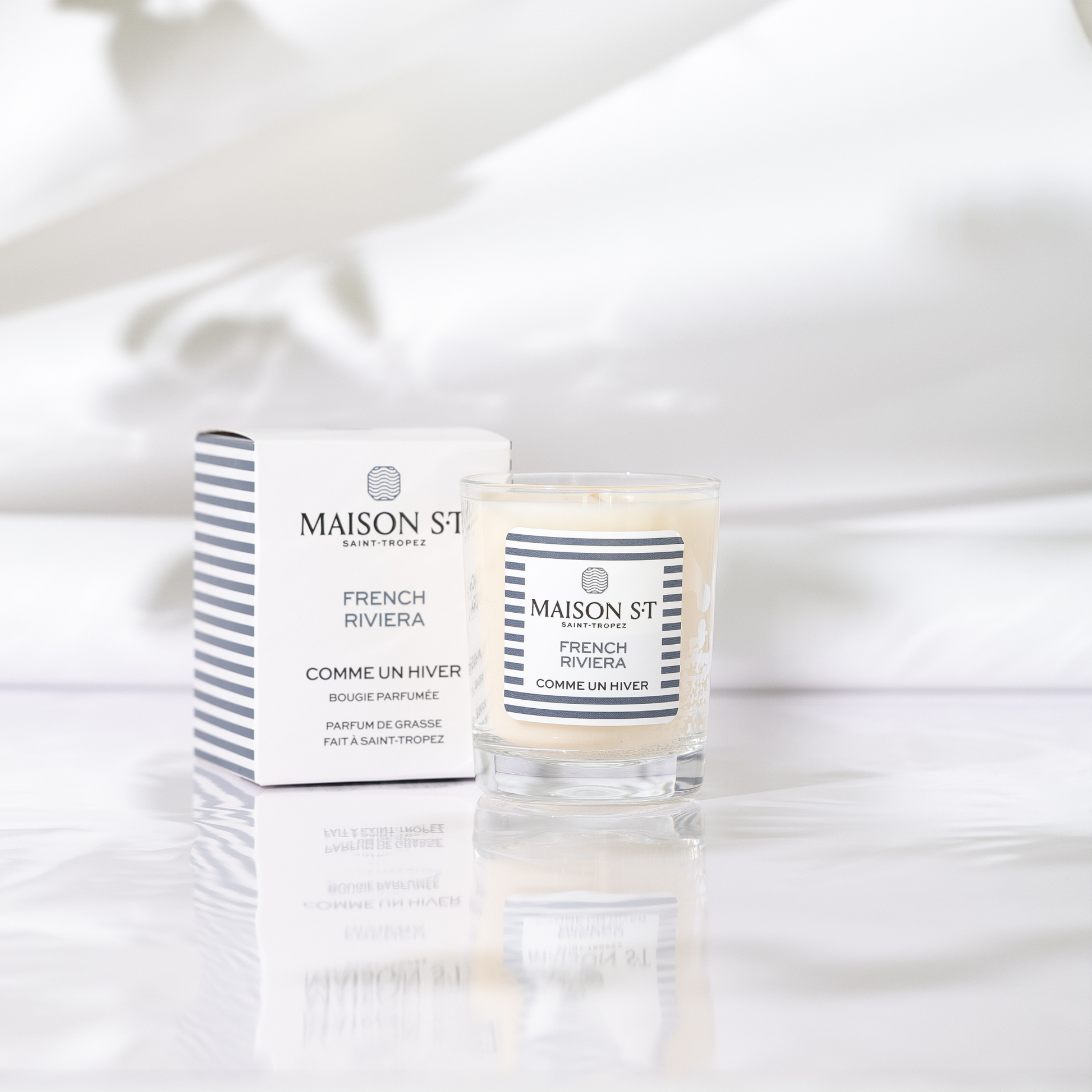 Maison ST Parfum, French Riviera is interested in the olfactory subtleties of the seasons to bring home the natural signature of the present moment. For example, experience winter and its benevolent freshness in your living room in the form of a pretty, sober, chic and refined candle with a black and white decor, a natural latitude between wood and leather.