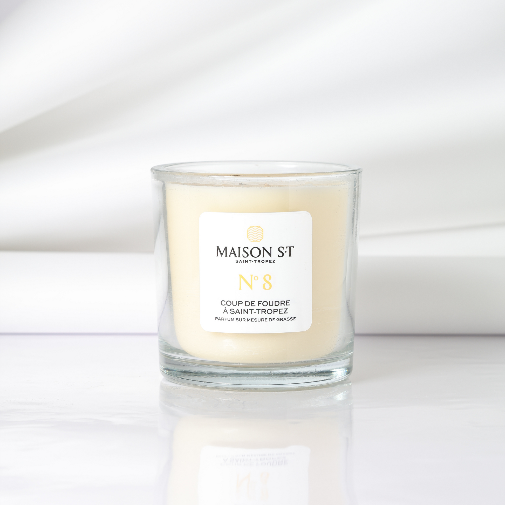 Fabriquée à Grasse avec des alcools naturels de betterave et coulée à la main dans notre atelier de création à Saint-Tropez, 12 rue de La Ponche.