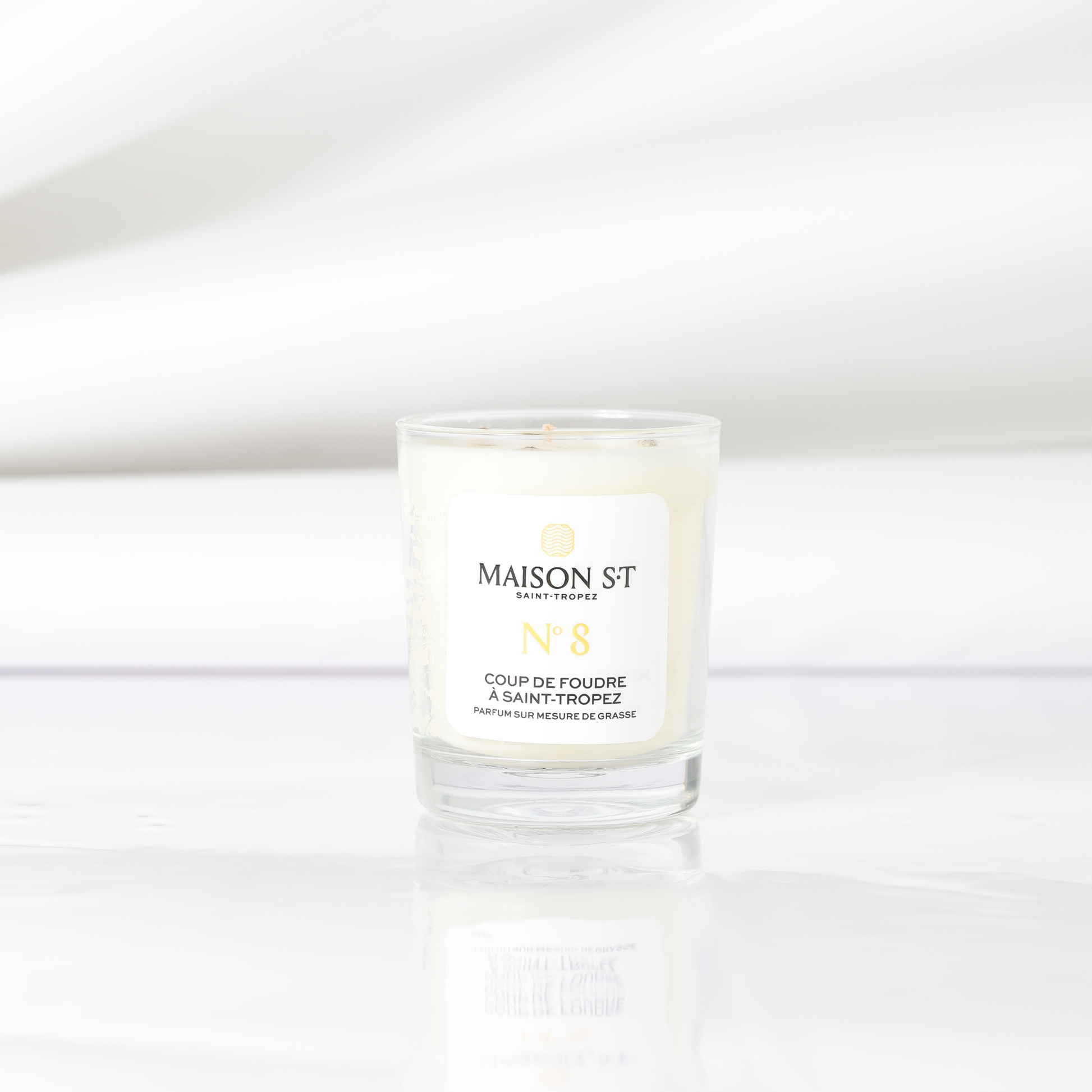 Notre bougie n°8 « Coup de Foudre à Saint-Tropez » capture l’intensité des nuits tropéziennes et la magie des rencontres imprévues. Inspirée par l’élégance de la French Riviera, elle dévoile un sillage à la fois sensuel et envoûtant.