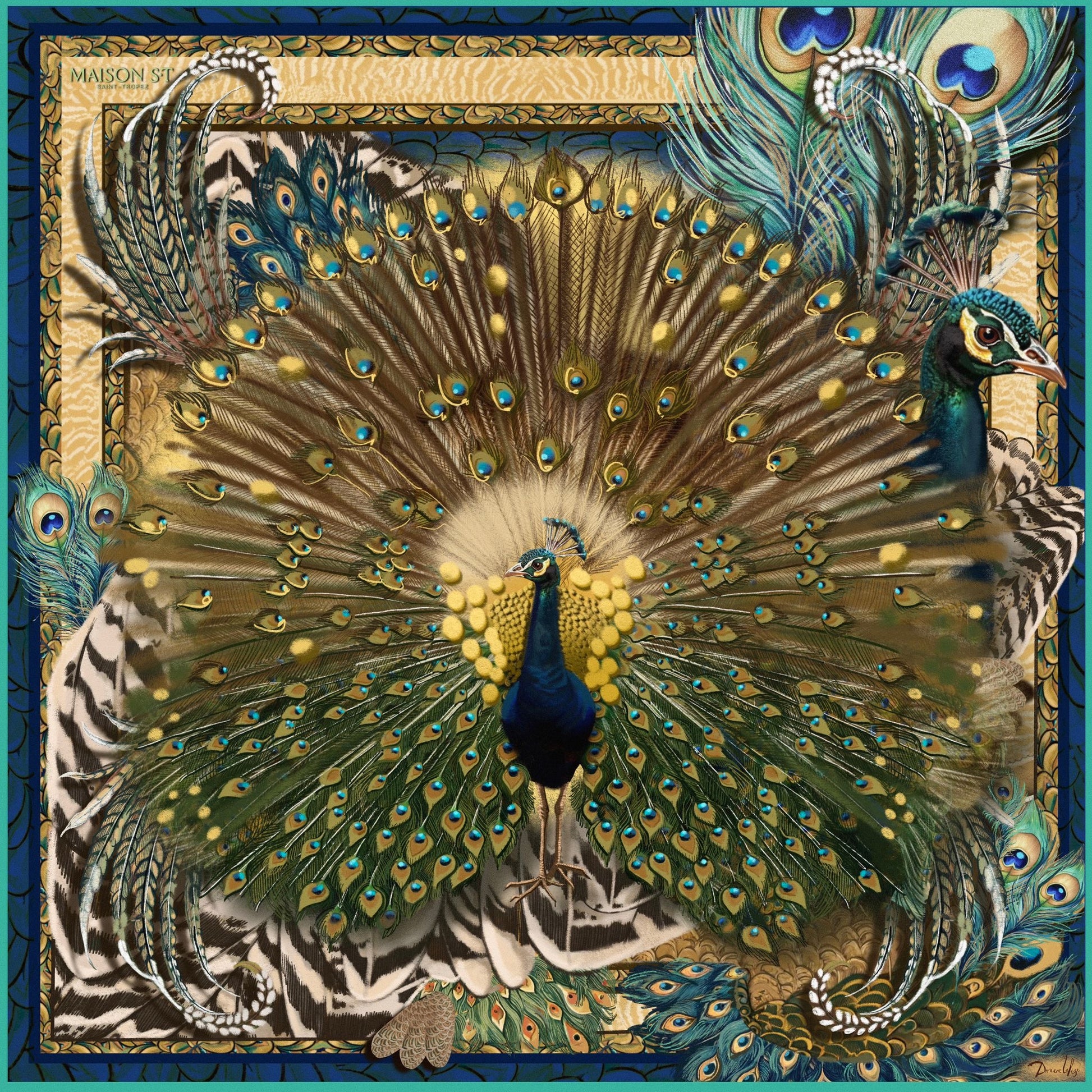 Réalisé en 100 % soie, il séduit par sa matière délicate, fluide et raffinée, offrant un tombé élégant et un toucher d’une grande douceur. Son motif inspiré du paon, symbole de grâce et de sophistication, incarne un véritable objet d’art à porter, entre élégance intemporelle et caractère affirmé.